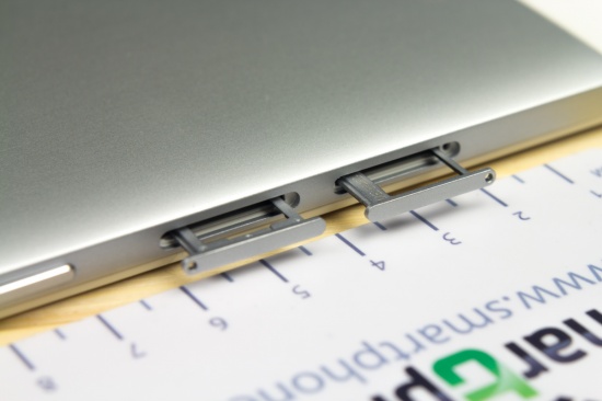 Однако большинство функциональных элементов сосредоточено все же на правой «боковушке»: кнопка питания, сдвоенная клавиша регулировки громкости, а также выдвижные слоты для SIM-карты и карт памяти.
