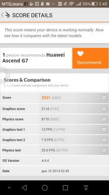 G7 в AnTuTu набирает порядка 20,5 тысяч баллов, а на практике без проблем воспроизводит Full HD-видео и справляется с большинством ресурсоемких игр.