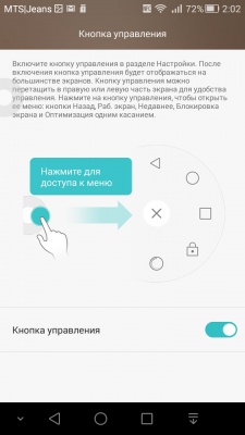 Среди наиболее интересных особенностей интерфейса: поддержка управления жестами и возможность активировать «Кнопку Управления». Последняя свободно перемещается по левому или правому краю экрана и абсолютно не мешает работе с интерфейсом.