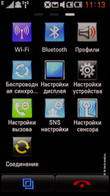 Меню тоже из трех экранов, ярлыки можно менять местами, перетаскивая
