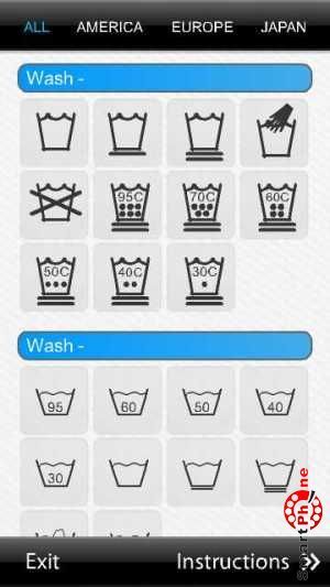 Программа Laundry Help представляет собой утилиту, содержащую символы, которые Вы часто видите на ярлыках одежды, и найдя свои, Вы поймете как в чем и при какой температуре нужно постирать вещь.