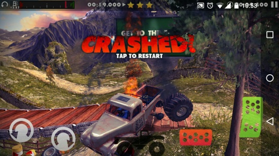 Для управления автомобилем используются кнопки ускорения и торможения, а также кнопки наклона транспортного средства. При желании их можно заменить наклонами устройства.