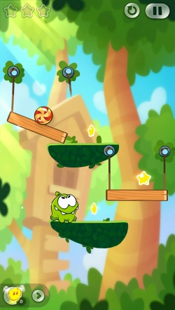 Задание игрока — помочь Ам Няму заполучить сладость посредством перерезания веревок, на которых подвешены конфеты. Каждое точное попадание последних в рот герою приносит игроку медали, позволяющие открывать доступ к новым уровням игры и состязаться с друзьями.