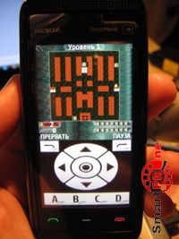 помощью сенсорной экранной клавиатуры. Под игровым табло размещены счетчики количества жизней и набранных очков. Также здесь размещен счетчик количества противников.