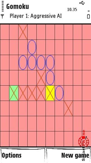 Игра Gomoku представляет собой мобильную версию традиционной японской настольной и очень популярной игры в крестики-нолики. Цель игры заключается в том, чтобы раньше соперника получить непрерывный ряд из пяти крестиков по горизонтали, по вертикали или по диагонали (программа играет ноликами, первый ход всегда делает человек).
