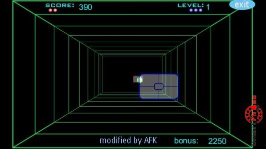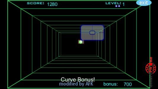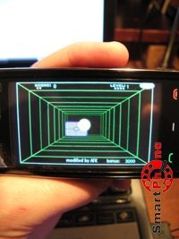 процесс. Стратегия игры состоит в том, чтобы играя с виртуальным игроком, отбивать шарик и набирать бонусные очки. Для начала игры необходимо навести прицел на шарик нажать на нем стилусом нашего смартфона. Следует заметить, что, лично меня, очень порадовал эффект прохождения световой рамки по игровому туннелю, по мере продвижения шарика. На игровом табло можно наблюдать различные счетчики, отображающие количество бонусных очков, оставшихся жизней, набранных очков... В правом верхнем углу экранного табло размещена функциональная клавиша Exit, позволяющая выходить из игры в главное меню нашего смартфона. Следует также заметить, что по мере нарастания уровня сложности искусственный интеллект умнеет и начинает играть более агрессивно, "откалывая различные финты", так что приходится играть не расслабляясь...