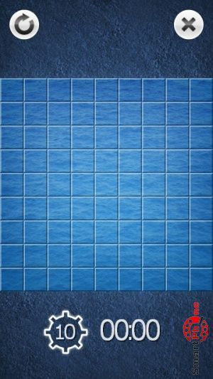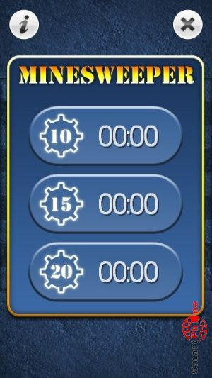 Игровое табло представлено пользователям приятным внешним дизайном. Посередине размещено игровое поле, которое нам предстоит разминировать. Внизу экранного табло отображены текущий уровень сложности и счетчик времени прохождения уровня. Вверху экранного табло размещены две функциональные клавиши, позволяющие начинать игру заново и выходить в главное меню игры. Все управление игрой производится с помощью стилуса смартфона.