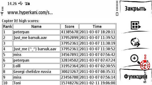 High Scores - с помощью данного пункта мы можем выходить в сеть интернет и просматривать онлайн статистику других игроков: