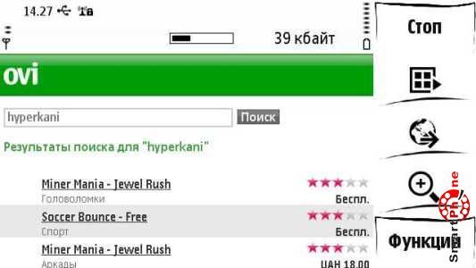 Hyperklani Games - с помощью данного пункта мы можем выходить в сеть интернет и посещать сервис Ovi: