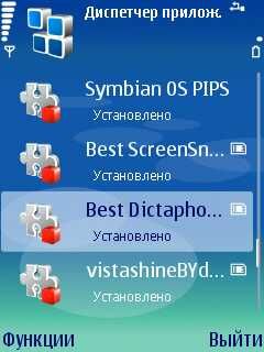 Хотелось бы также заметить, что внизу главного меню программы присутствуют два пункта: слева пункт Функции (содержит в себе все необходимые функции для адекватной работы с утилитой), справа находится пункт Выйти (с помощью данного пункта мы можем выйти из программы в главное меню нашего смартфона).