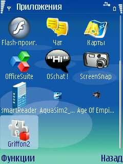 Программа Griffon2 представляет собой двухсторонний файловый менеджер. В программе имеется возможность просмотра графических изображений, видео и звуковых файлов (mp4 и 3GP). Присутствуют также базовые файловые