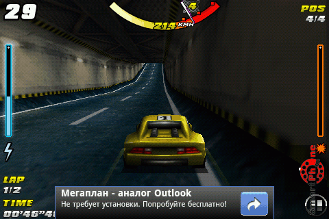 Итак, Raging Thunder, игра представляет собой некое подобие Need fors Speed. В игре вам предстоит посоревноваться с противниками в мастерстве вождения. Управление в программе производится с помощью акселерометра смартфона. Следует отметить, что чувствительность акселерометра несколько завышенная, поэтому для того чтобы управлять машиной, необходимо к этому приноровиться.