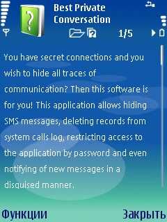 Программа Best Private Conversation представляет собой утилиту, с помощью которой Вы сможете скрывать Ваши СМС сообщения от посторонних глаз,