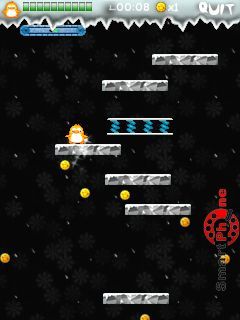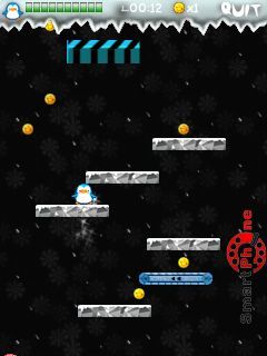 котором и путешествует управляемый нами пингвинчик. Вверху игрового табло имеется строка, в которой показаны - уровень жизни игрока, текущее время прохождения и количество собранных монеток. Управление пингвинчиком очень простое и осуществляется с помощью джойстика нашего смартфона.