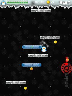 Мы, то есть пингвинчик, появляемся на какой то площадке отдаленно напоминающей льдину. Смысл игры заключается в постоянном движении в процессе которого необходимо собирать монетки. Игрока подстерегает множество ловушек. Если мы надолго "зазеваемся" на площадке, то пингвинчик просто провалится сквозь неё, значительно утратив в жизни. Кроме этой опасности в игре присутствуют еще платформы, отдаленно напоминающие ленточные конвейеры, попав на которые мы можем просто съехать по направлению движения. Большую опасность представляют также платформы с ледяными шипами, попав на которые игрок теряет уровень жизни. Значительно помогают игроку платформы-батуты, с помощью которых мы можем подпрыгнуть до собираемой монетки: