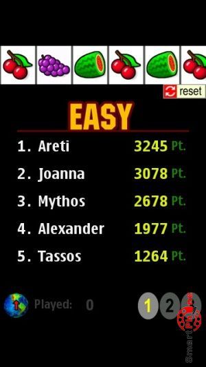 бандита"; в игре есть 5 видов фруктов, а также 2 вида предметов; возможность сокращать пустые места; в игре реализовано три варианта: легкий, сложный, Frutakia.