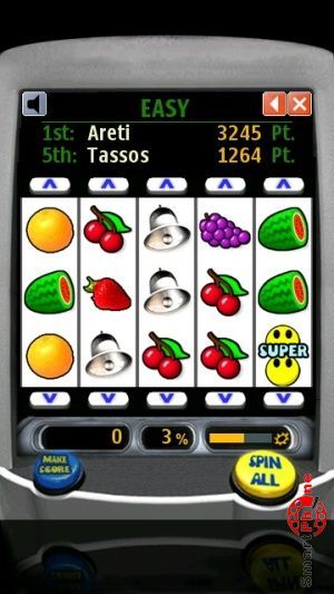 предмет Super дает наибольшее количество очков. Запустить вращение дисков мы можем с помощью нажатия функциональной клавиши Spin All, которая располагается справа внизу игрового табло. Следует отметить, что вверху игрового табло располагаются три функциональные клавиши, позволяющие быстро отключить все звуковые эффекты игры, перейти в главное меню игры, свернув текущий игровой процесс и выйти из игры в главное меню нашего смартфона. Также на игровом табло можно наблюдать счетчики максимальных рекордов игры, показатель скорости вращения дисков с фруктами...