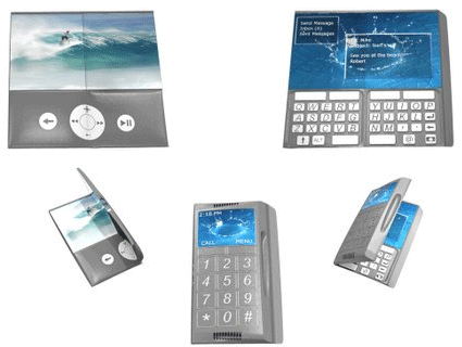 Концептуальный телефон Nalu – телефон + коммуникатор + мультимедийный плеер в одномЭтот прототип телефона будущего интересен в первую очередь тем, что на его примере сделана попытка объединить несколько разных пользовательских интерфейсов, чем пока не могут похвастаться обычные телефоны. В зависимости от того, каким образом он будет открыт, перед вами предстанет один из трех интерфейсов: телефонный с цифровой клавиатурой, текстовый с QWERTY-клавиатурой и интерфейс для медиаплеера с колесиком управления и медиаклавишами. Ну а открыт он может быть, как видно по фото и видео, по-разному.