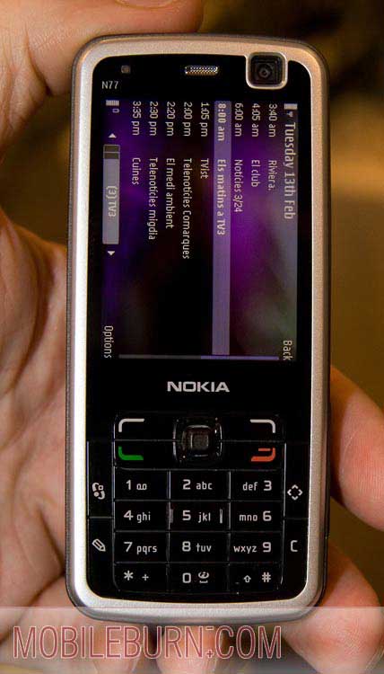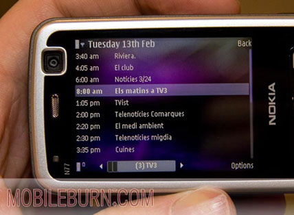 Nokia N77 - Со встроенным ТВ-приемникомN77 — новый смартфон от Nokia. Он относится к серии S60, оснащается DVB-H и имеет мощную программную поддержку телевизора, заключающеюся, например, в программируемых напоминаниях, встроенном просмотрщике телепрограмм. ![]()