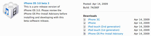 Прошивка iPhone OS 3.0 обновилась до версии beta 3Новые версии прошивки iPhone OS 3.0 выходят согласно запланированному графику. Этой ночью разработчикам стала доступна третья бета-версия прошивки iPhone OS 3.0.
