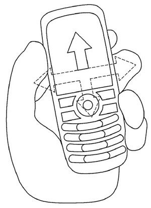 Запатентованный метод предназначен для ввода текста на мобильных устройствах, оснащенных 12-кнопочной алфавитно-цифровой клавиатурой и акселерометром. Его суть заключается в том, чтобы избавить пользователя от перебора букв, расположенных на одной кнопке клавиатуры, и заменить его нажатием кнопки с наклоном. Работу нового метода ввода можно проиллюстрировать простым примером. Вы держите устройство в каком-то положении, которое разработчик называет исходной плоскостью. Для ввода буквы, вы нажимаете соответствующую ей алфавитно-цифровую клавишу и наклоняете мобильное устройство в соответствующем направлении. Угол наклона должен быть не менее 15 градусов, но не более 90 градусов. То есть для ввода буквы «e» вам необходимо нажать кнопку «3» и наклонить телефон в сторону от себя.