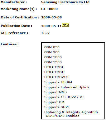 аппарат носит кодовое имя GT-I8000 и работает в сетях