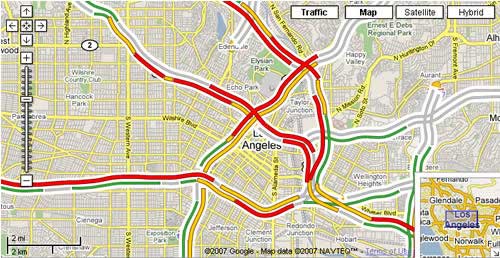 Google Maps показывает дорожные затрудненияGoogle, ранее сделавшая карты доступными для мобильных устройств, публикует в рамках своего проекта Google Maps информацию о затруднениях движения автомобилей в 30 крупных американских городах.