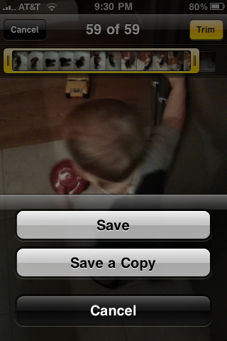 примеру, уже было обнаружено, что после обработки видео на iPhone 3GS, смартфон предлагает выбрать новый пункт меню «Save a Copy» (сохранить копию).