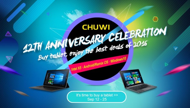 12-летие Chuwi: акции и спецпредложения на планшеты с 12 по 25 сентябряКомпания Chuwi напоминает читателям портала Smartphone.ua об акции, посвященной празднованию 12-летия бренда, в рамках которой с 12 по 25 сентября планшеты компании на таких всемирно популярных торговых площадках, как Gearbest, Banggood, Geekbuying и Chuwi Aliexpress можно приобрести со скидкой и даже получить совершенно бесплатно. Акция: http://promotion.chuwi.com/chuwi-12th-anniversary-celebration/