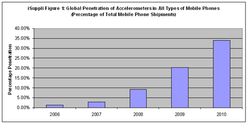 В 2010 третья часть телефонов будет оснащена акселерометрамиАкселерометры начали применять в мобильных телефонах сравнительно давно, но особенно популярными они стали после появления на рынке смартфона iPhone, в котором акселерометр является важной составляющей пользовательского интерфейса. Аналитики предрекают довольно большую популярность этим сенсорам.