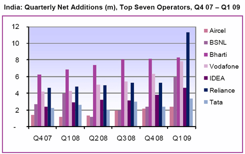 первый квартал 2009 года в Индии появилось 44,87 миллиона новых