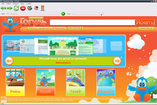 Новый Гогуль - первый русскоязычный детский браузерВ России запущен в тестовую эксплуатацию первый в браузер на русском