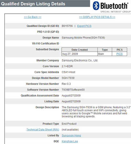 Коммуникатор Samsung Behold 2 прошел сертификацию в Bluetooth SIGНа сайте организации Bluetooth Special Interest Group (SIG), которая занимается сертификацией устройств, оснащенных модулем Bluetooth, был обнаружен мобильный телефон Samsung Behold 2. Из его описания можно сделать вывод, что это коммуникатор, работающий под управлением операционной системы Android.