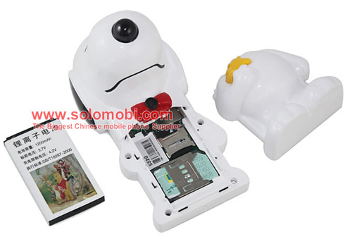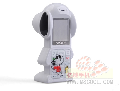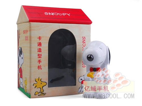 упаковка телефона Snoopy оформлена в виде собачьей будки,