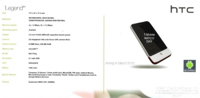 В Сети появился роадмап компании HTC на первую половину 2010 года. Это уже не первый случай, когда о новинках тайваньского производителя мы узнаем благодаря утечке информации.