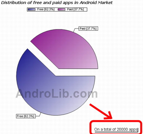 Компания Google не афиширует информацию о том, как много приложений находится в Android Market, но за нее это сделала компания AndroLib. Она отмечает, что после появления в Android Market платных