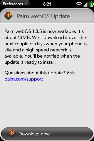 Операционная система webOS обновилась до версии 1.3.5Компания Palm не прекращает совершенствовать операционную систему WebOS. Теперь владельцы коммуникаторов Palm Pre получили возможность обновить его программное обеспечение до версии webOS 1.3.5.