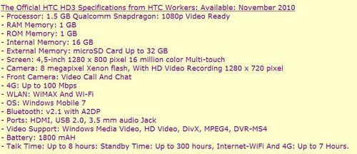 Азиатский ресурс сообщает, что мощный HTC HD3 появится в продаже в