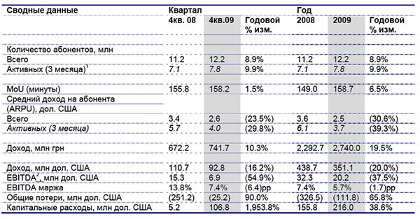 Оператор мобильной связи life:) объявляет годовые финансовые и операционные результаты, а также результаты четвертого квартала 2009 года. Несмотря на то, что Украина больше других стран подверглась влиянию мирового экономического кризиса, оператору на протяжении года удавалось обеспечивать постоянный рост своих главных показателей в гривне.