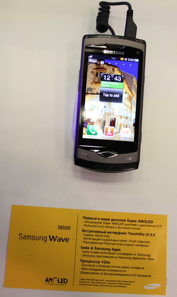 Samsung Wave – первый bada смартфонSamsung Electronics объявила о выпуске новой модели смартфона Samsung Wave (S8500). Ожидать новинку стоит с конца апреля 2010 года. Особенность Samsung Wave – оригинальная, впервые использующаяся, платформа Bada, разработанная специалистами Samsung, и дисплей Super AMOLED. Представленный смартфон отличается реалистичной картинкой 3,3-дюймового Super AMOLED-дисплея, развитыми социальными функциями новой платформы Social Hub и интуитивным, настраиваемым интерфейсом TouchWiz 3.0. Благодаря интегрированному высокочастотному процессору с частотой 1 ГГц Samsung Wave обеспечивает быструю работу со множеством задач одновременно, что делает новую модель отличным мультимедийным устройством.