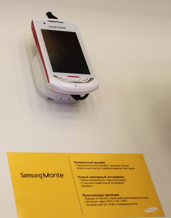 Имея характеристики устройства премиум-класса, новая модель Samsung отличается 3,0-дюймовым WQVGA жидкокристаллическим дисплеем с соотношением сторон 16:9 и 3,2-мегапиксельной камерой с дополнительными режимами: Smile Shot, панорамная съемка и Face Detection. Кроме того, Monte оснащен службой поиска музыкальных композиций Find Music, позволяющей скачать музыку непосредственно на телефон, а также удобными функциями умной блокировки Smart Unlock и функцией зума одним пальцем.