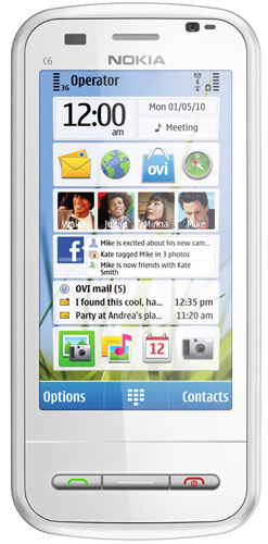 Стоит добавить, что смартфон Nokia C6 работает под управлением операционной системы Symbian S60 5.0 и оснащен GPS-приемником, модулем Wi-Fi, модулем Bluetooth, FM-приемником, 3,5-мм разъемом для наушников и слотом для карт памяти формата MicroSD. На прилавках магазинов смартфон Nokia C6 появится во втором квартале текущего года, по ориентировочной цене 220 евро.