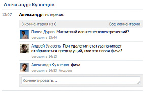 В социальной сети "ВКонтакте" полностью переработали сервис статусов. Теперь можно комментировать статусы и просматривать их историю. Так как разработчики перевели статусы и стены на более эффективную систему хранения, все это работает достаточно быстро. ![]() И даже если кто-то оставит комментарий к очень старому статусу, пользователь его не пропустит, так как появился обзор комментариев (ссылка "показать комментарии к статусам" на стене). Кстати, оставлять сообщения на стене тоже стало удобнее, и теперь, общаясь на стене, можно указывать, кому именно написан ответ. ![]() Если же пользователь по какой-то причине не хочет, чтобы его статусы могли комментировать, можно отключить эту возможность в Настройках приватности ("Кто может комментировать мои статусы?"). Источник: ВКонтакте