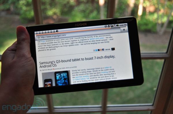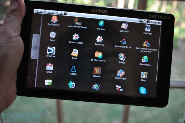 ![]() Совсем недавно мы уже публиковали новость об этом интересном планшетном ПК. Девайс попал в руки к журналистам Engadget, и те незамедлительно решили порадовать нас свежими фотографиями. Для тех кто пропустил новость, напомним - Augen GENTOUCH 78 – это 7-дюймовый планшет на Android 2.1, который может похвастаться сенсорным экраном (800 х 480), 800-мегагерцовым процессором, 256 МБ RAM, 2 ГБ встроенной памяти, WiFi, слотом для карт SD/MMC и быстрым доступом к Market App Store. планшет поддерживает все популярные форматы файлов. И стоит всего $150. ![]() ![]()