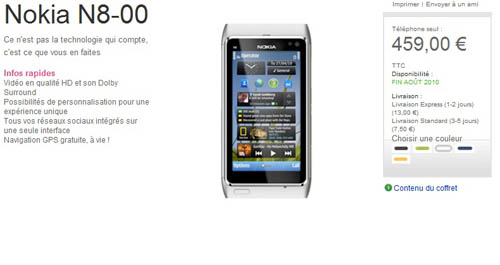 Nokia N8 доступен для предзаказа во ФранцииСо вчерашнего дня смартфон Nokia N8 доступен для предзаказа во Франции. При предварительном заказе Nokia N8 будет стоить 459 евро. При этом