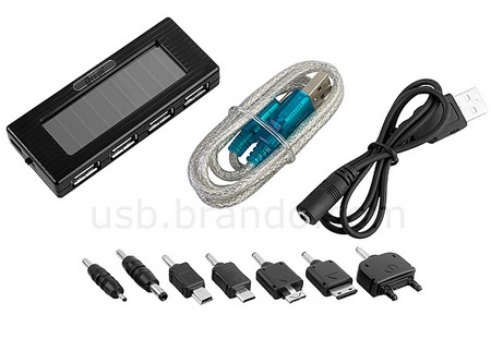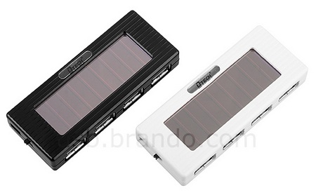Онлайновый магазин Brando предствляет новый многофункциональный USB-хаб, снабженный панелью солнечных элементов. Хаб снабжен аккумулятором емкостью 1300 мАч и имеет 4 USB 2.0 порта для подключения самых разных портативных устройств: мобильных