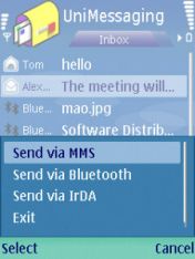 UniMessaging: универсальный конвертер для сообщений на S60-смартфонеКомпания Wireless Labs Technologies выпустила новую программу UniMessaging для смартфонов на базе платформы S60 3rd edition. Она предназначена для конвертирования и пересылки сообщения различных типов на мобильном устройстве. Например, пользователь получает интересное электронное письмо и хочет переслать его другу по SMS, однако стандартные приложения смартфона не позволяют легко сделать это. UniMessaging призвана справиться с этой проблемой. С её помощью можно конвертировать и пересылать SMS, MMS и E-mail. Также можно передавать сообщения по Bluetooth или IrDA. Конвертированию можно подвергнуть сообщения, хранящиеся в различных папках - входящие, отправленные, черновики и e-mail.