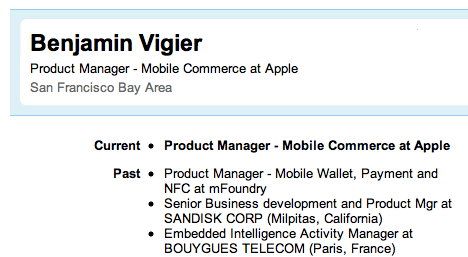 Вигер взят на должность менеджера по продукции в мобильной коммерции. Видимо, в следующем поколении нас ждет iPhone 5, который позволит расплачиваться за покупки и билеты одним прикосновением телефона к автомату. ![]()