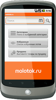 Приложение Молоток.Ру для AndroidПрограмма с удобным интерфейсом для покупателей аукциона. Популярный российский аукцион «Молоток.Ру» выпустил собственное