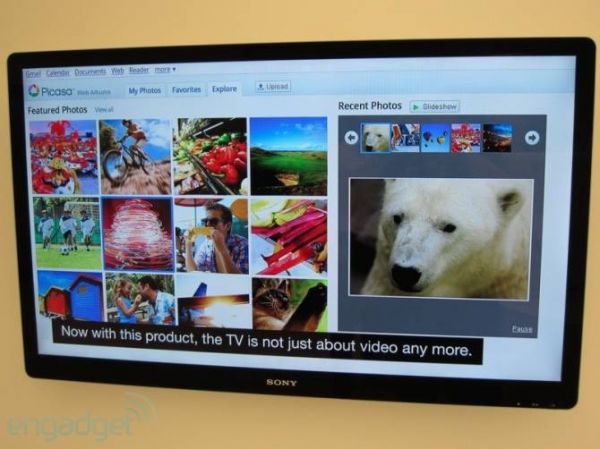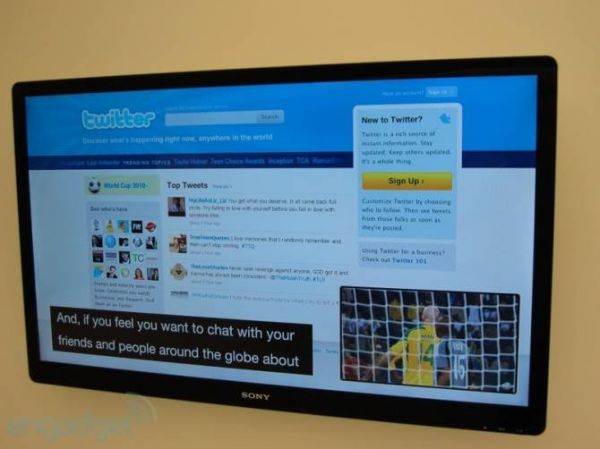 Демонстрация Google TV на выставке IFA 2010![]() На выставке IFA 2010 в Берлине компания Sony продемонстрировала LCD телевизор с поддержкой Google TV. Это, фактически, программная платформа на основе Android с браузером Chrome и поддержкой Adobe Flash 10.1. В числе ее возможностей - поиск в Интернете прямо с телевизора с помощью опции "Quick Search Box", таким образом можно найти, к примеру, нужные каналы или программы передач. Также доступен просмотр потокового видео с YouTube и одновременный показ телепередачи и поиск в Google - полупрозрачный браузер с окном поиска разместится прямо поверх теле-изображения в верхней части экрана. Google TV можно реализовать, кроме непосредственно телевизора, на специальной телеприставке или Blu-ray плеере. Прототип показанного Sony телевизора оборудован 40-дюймовым дисплеем с разрешением 1920x1080 пикселей (full HD). И операционная система Android с функцией Google TV на него уже предустановлена. По словам представителя компании, устройство работает, но реальная демонстрация не проводилась, можно было лишь посмотреть изображения интерфейса с разделами Google Map, Picasa и YouTube и так далее. Интересно, что данный телевизор - это не просто модель для показа на выставке, уже этой осенью он должен поступить в продажу в США.
